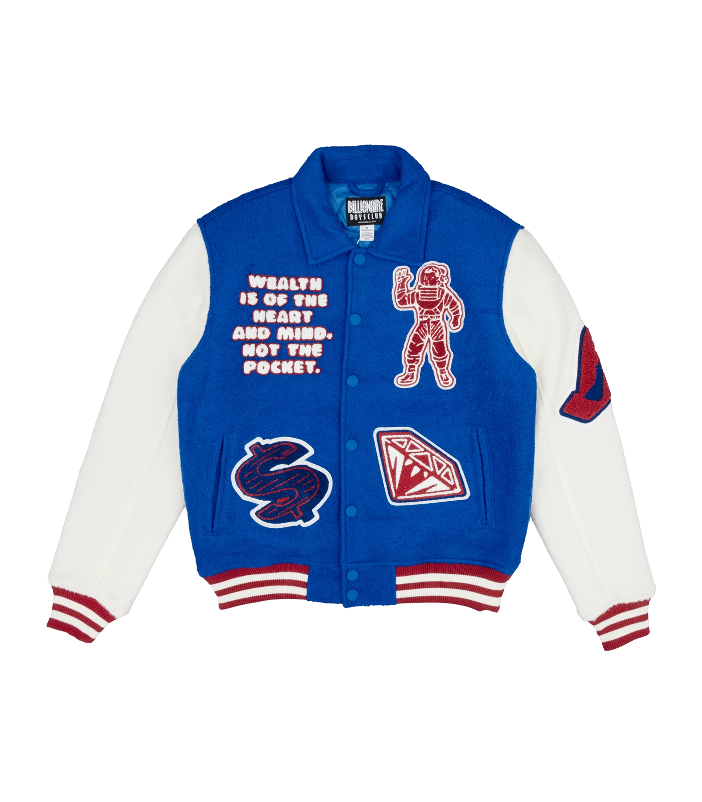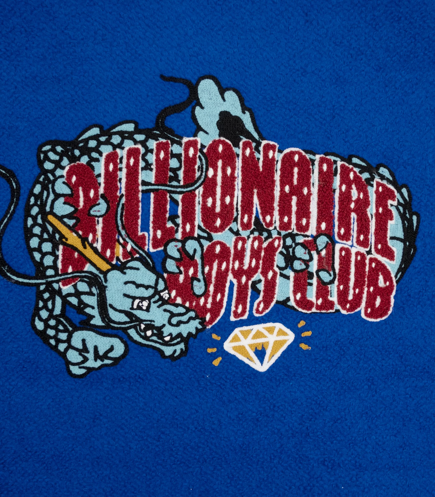 Billionaire Boys Club ICECREAM CNY Capsule – The BB Dragon Bomber features classic Billionaire Boys Club iconography, including the Diamonds and Dollars motif and the Standing Astronaut. The back features the classic Arch Logo with a dragon coiling itself around it. This bomber features embroidered patches and embroidery detailing throughout.