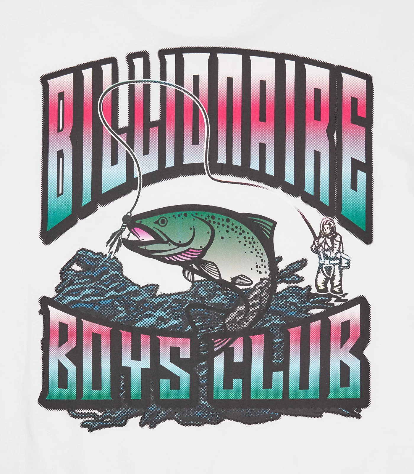 Billionaire Boys Club Pre-Fall ’24 – 100% Cotton Big Catch T-shirt with a screen print logo at front and the Big Catch graphic at back.
