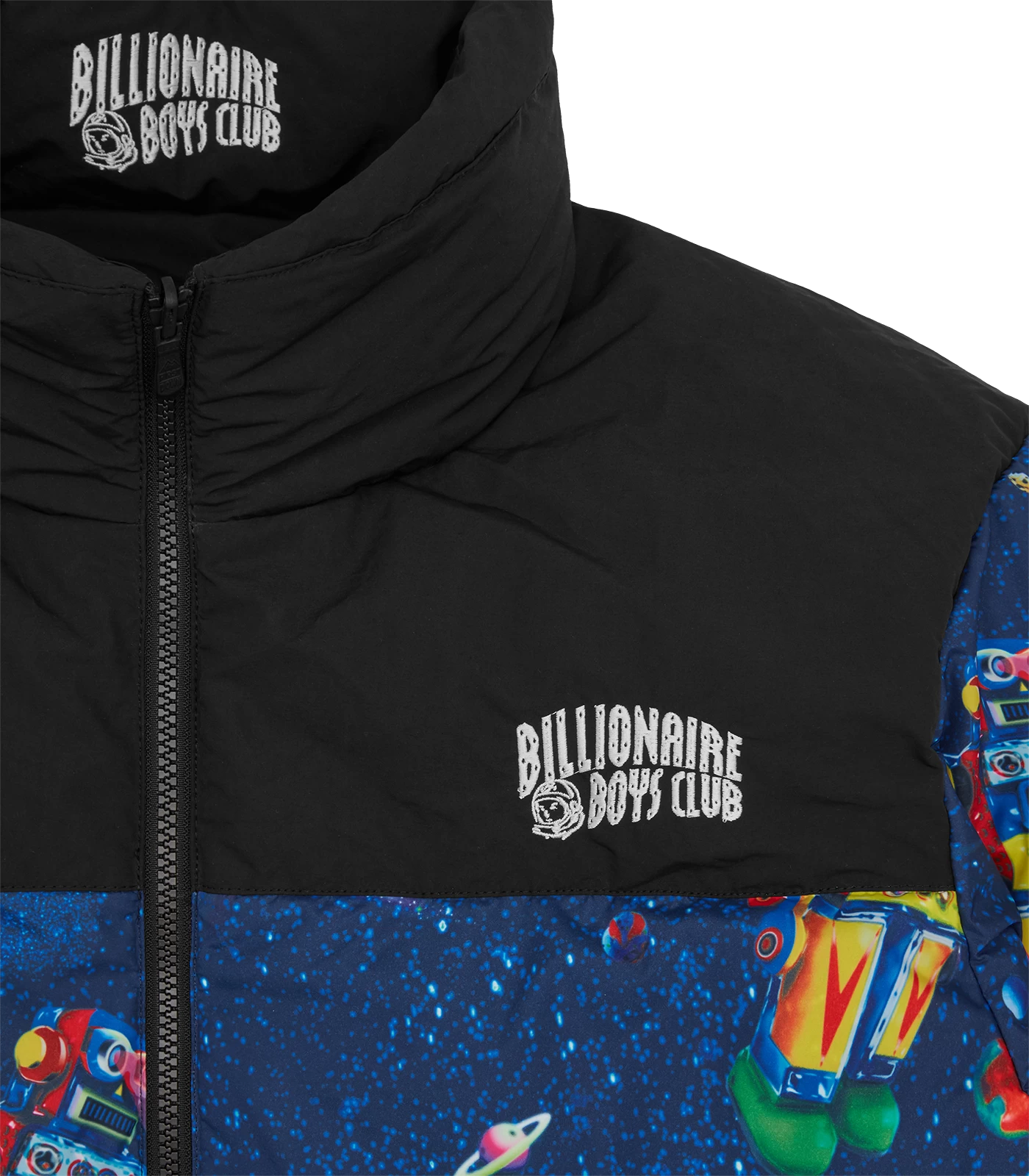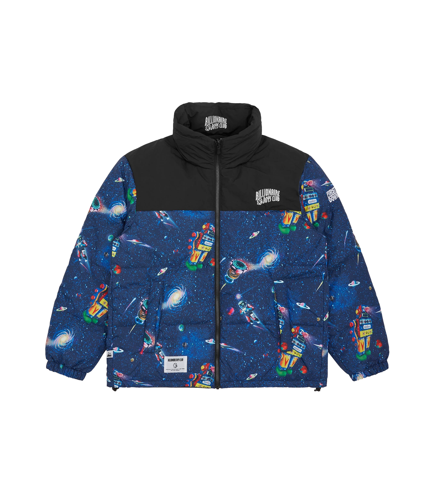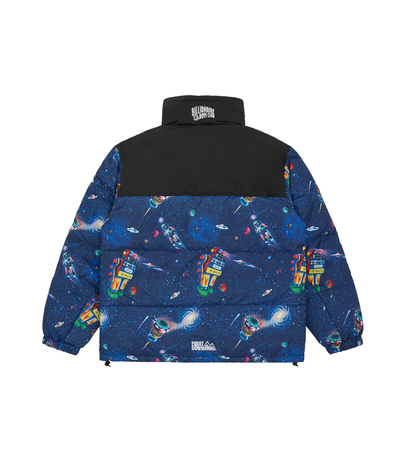 Billionaire Boys Club x First Down – Reversible Bubble Down Jacket, designed with a navy and black pattern, with an all over space print inner. Crafted with duck feather, and finished with 2 zip closure pockets and a zip up front.