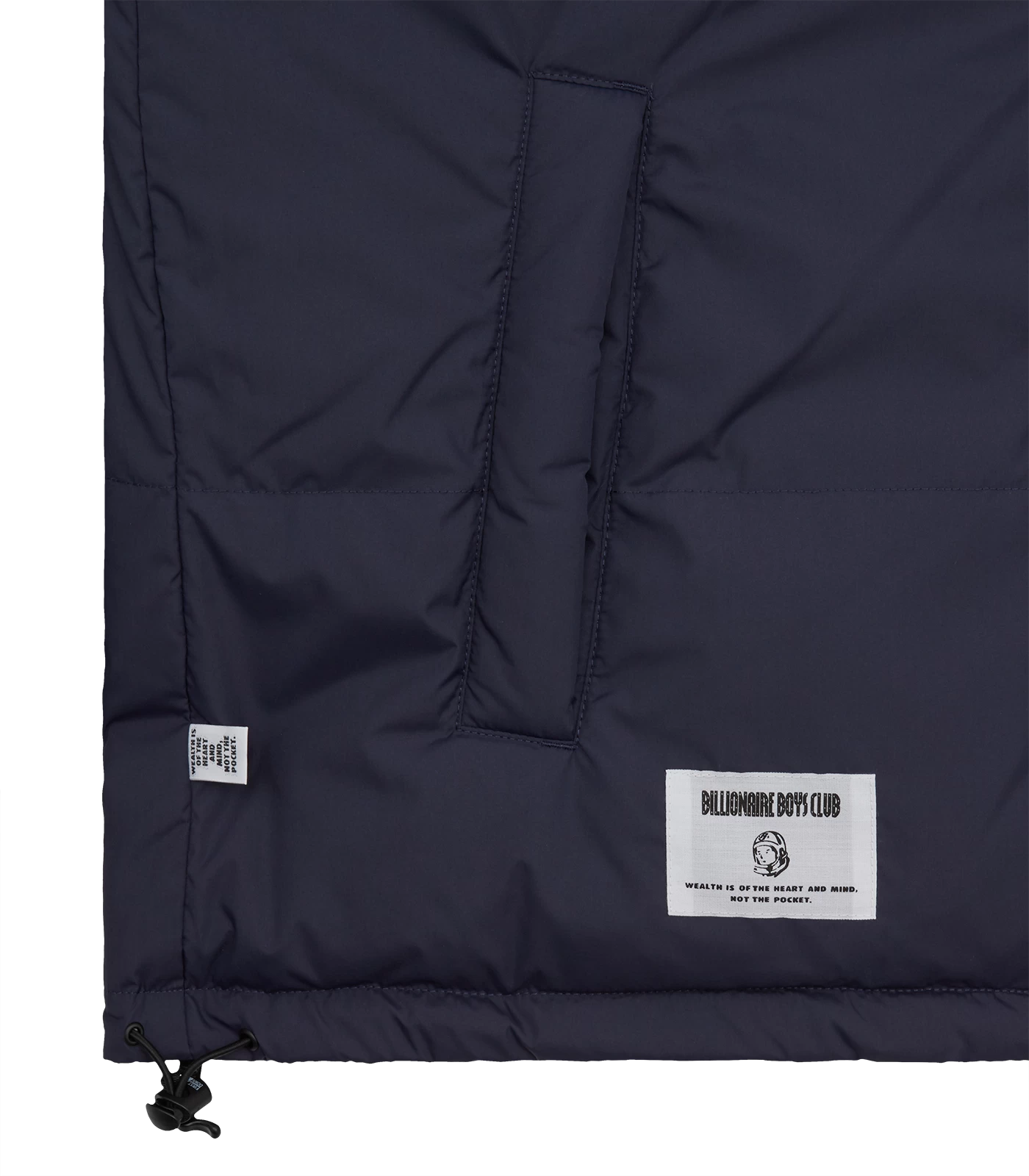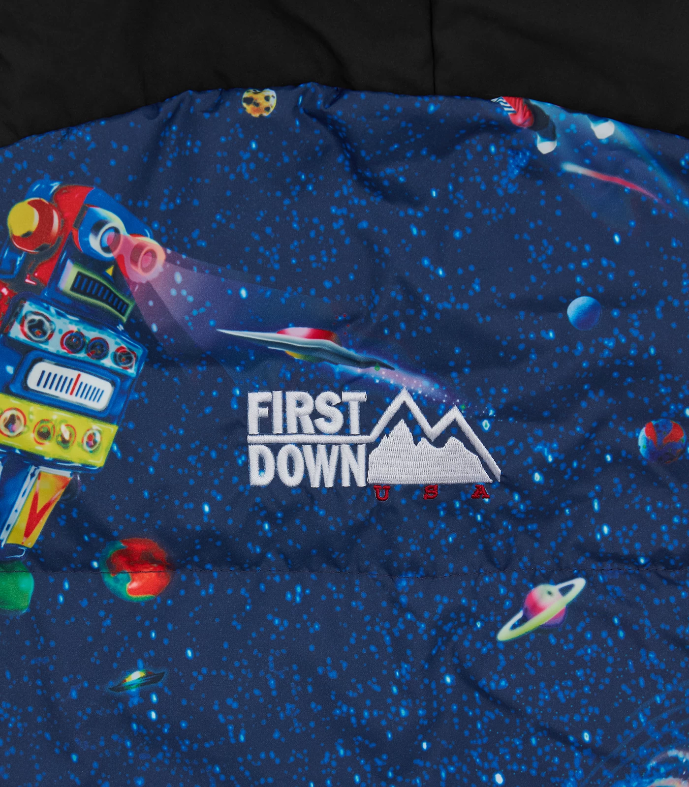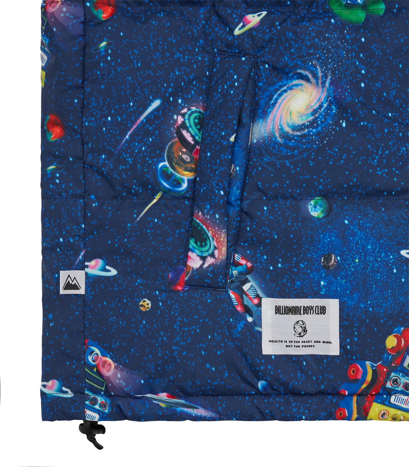 Billionaire Boys Club x First Down – Reversible Bubble Down Jacket, designed with a navy and black pattern, with an all over space print inner. Crafted with duck feather, and finished with 2 zip closure pockets and a zip up front.