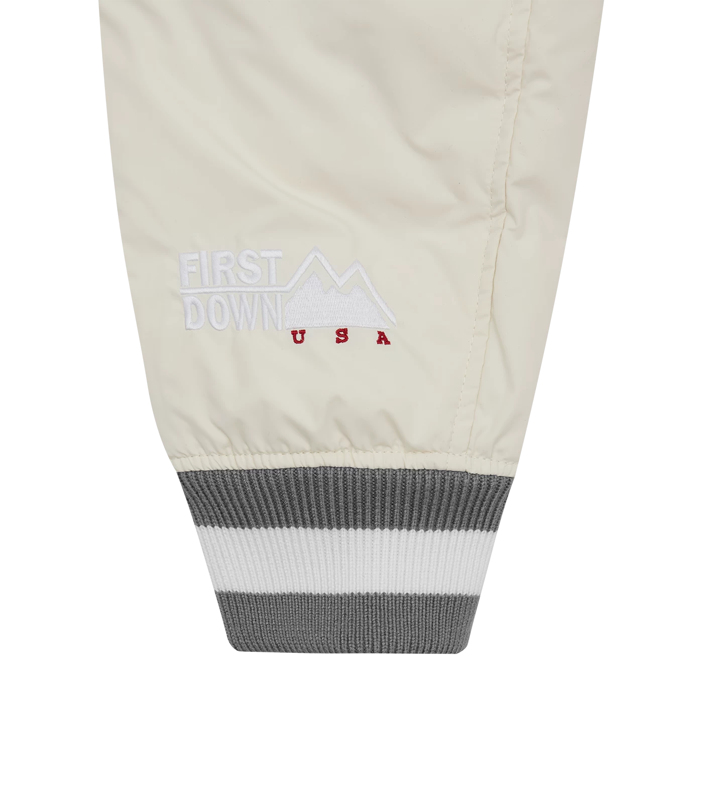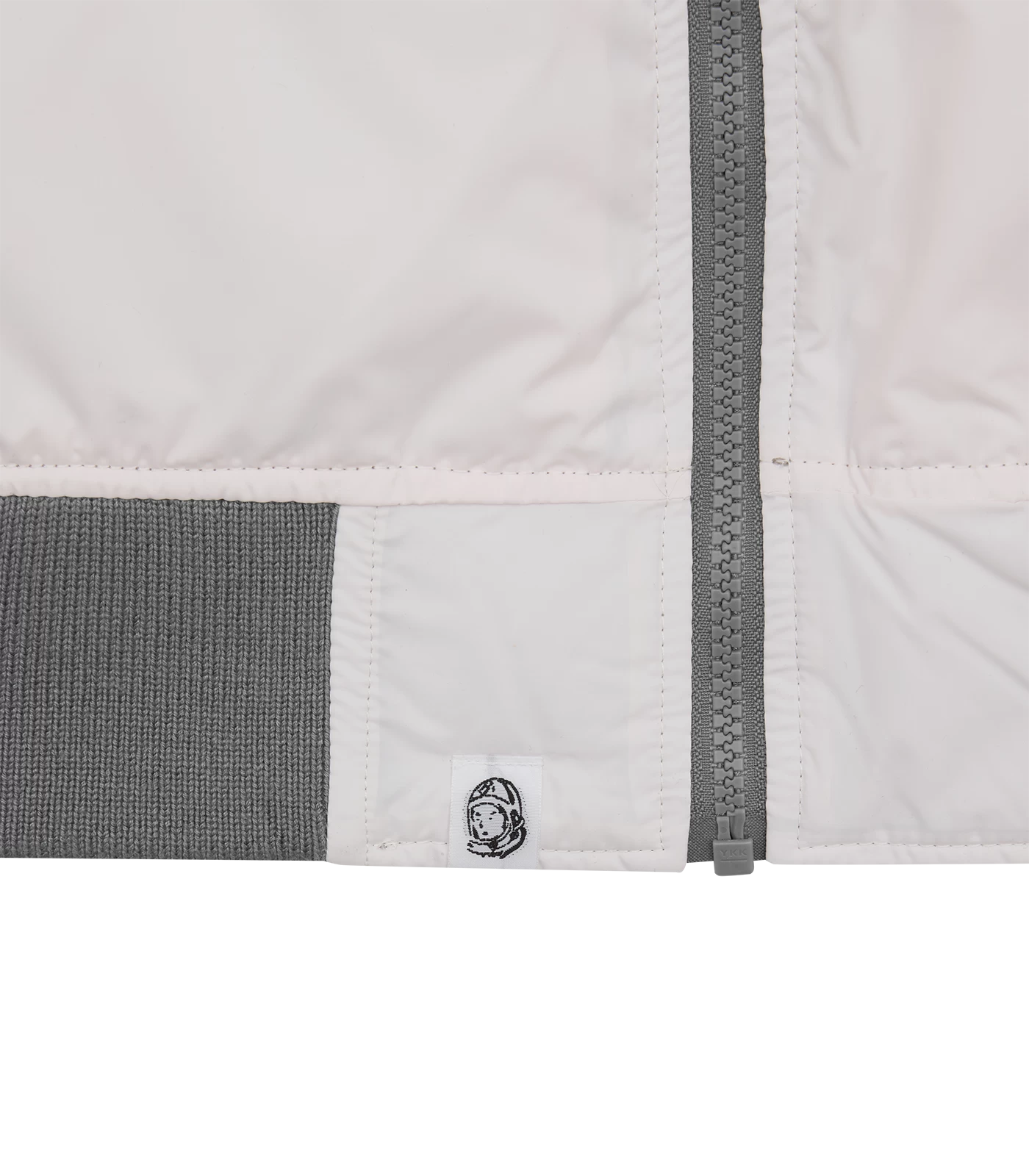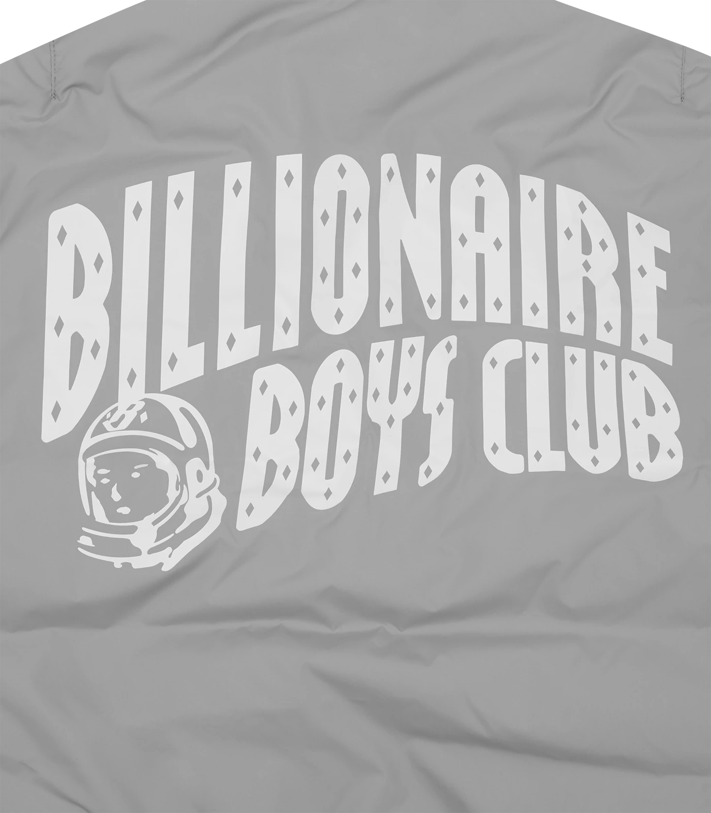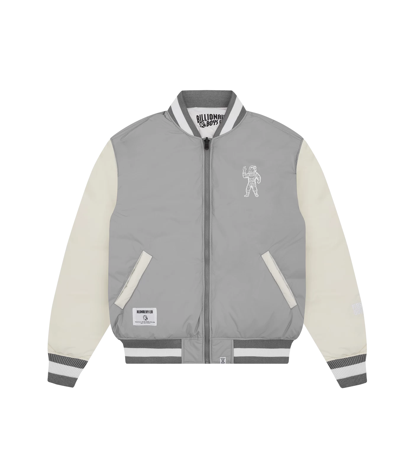 Billionaire Boys Club x First Down – Reversible Varsity Jacket, designed with a grey and pink pattern, with a pink inner. Crafted with duck feather, and finished with 2 zip closure pockets and a zip up front.