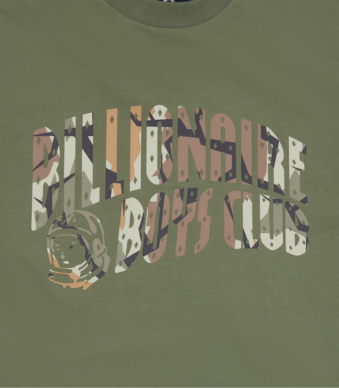 Billionaire Boys Club Spring ’24 – Camo Arch Logo T-Shirt, produced using 200GSM cotton, features the Billionaire Boys Club Arch logo camo graphic at front and the iconic standing astronaut at back neck.