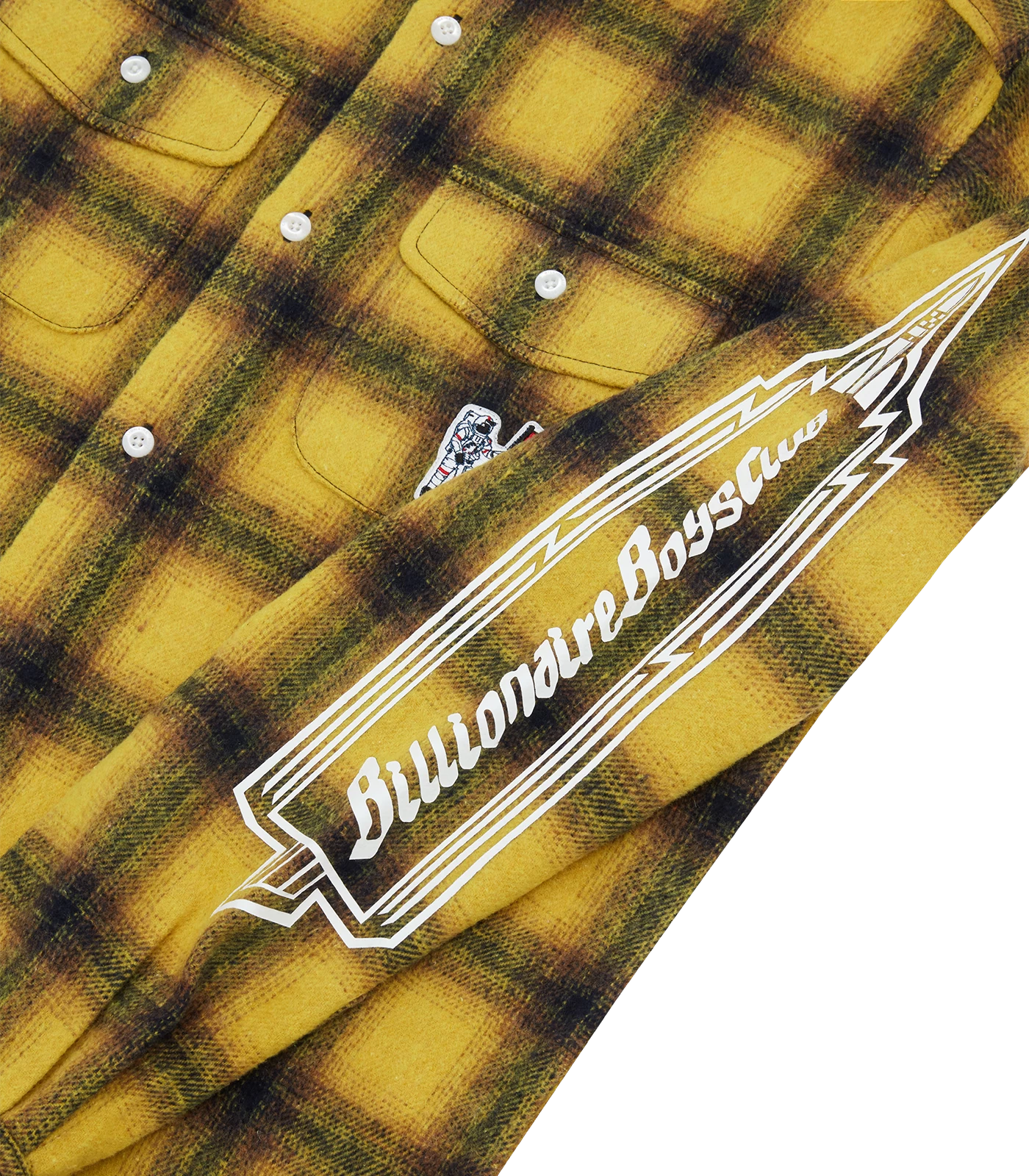 Billionaire Boys Club Spring ’24 – This Check L/S Shirt presents an astronaut patch at front and the Billionaire Boys Club logo at sleeves.