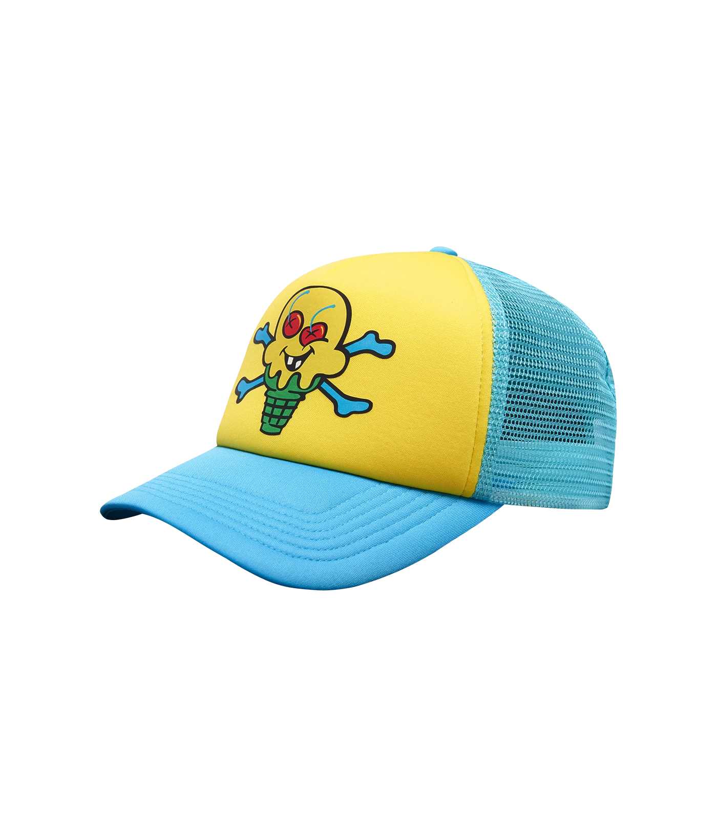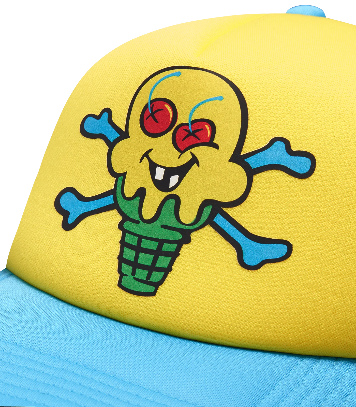 ICECREAM Pre-Spring ’24 – Cones And Bones Trucker Cap featuring the signature Cones & Bones logo screen printed on front.