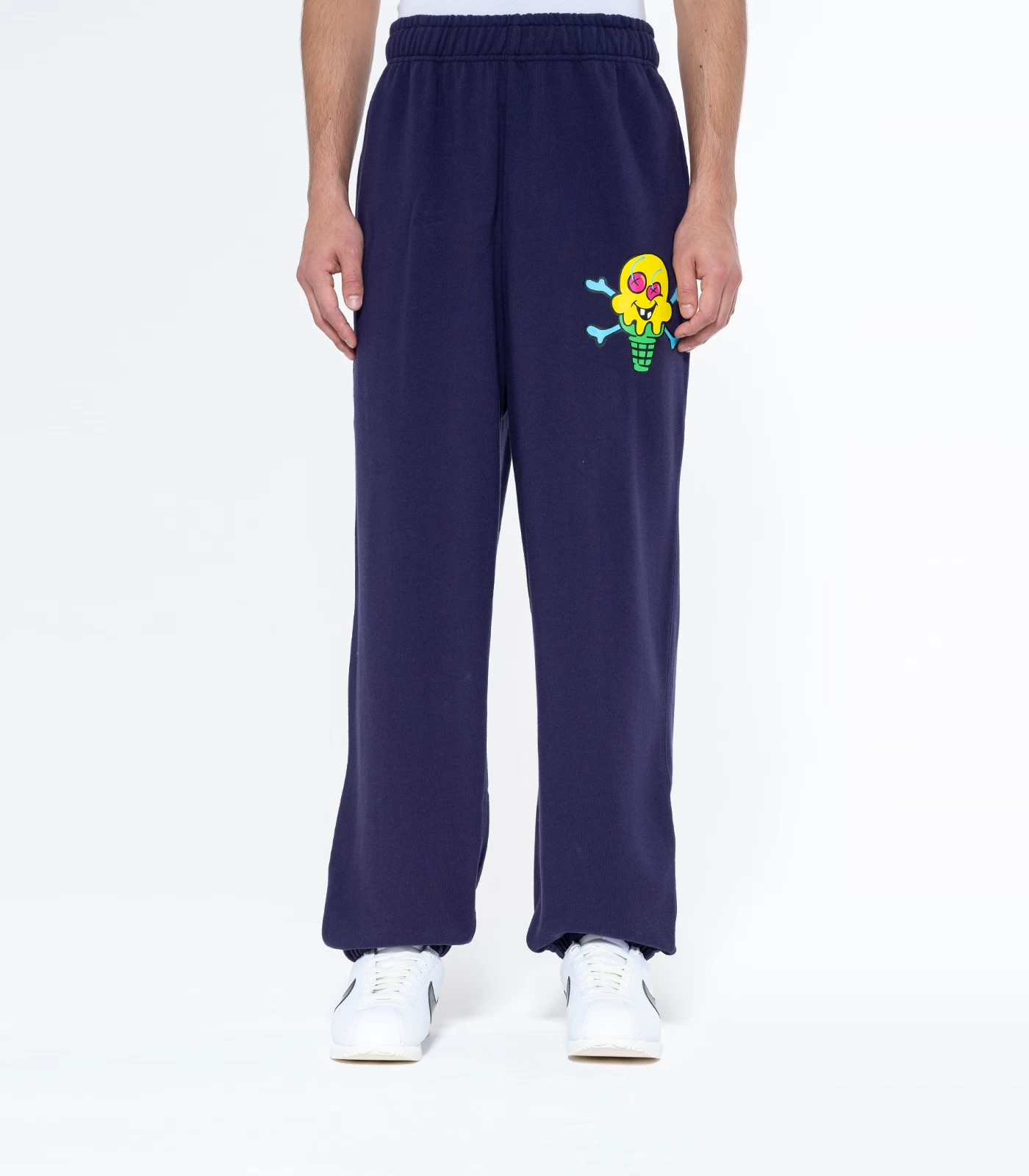 ICECREAM Pre-Spring ’24 – Cones & Bones Sweatpants featuring the Cones & Bones logo at front and embroidered popsicle at back pocket. Matching hoodie available.