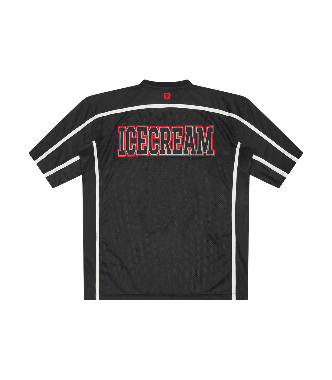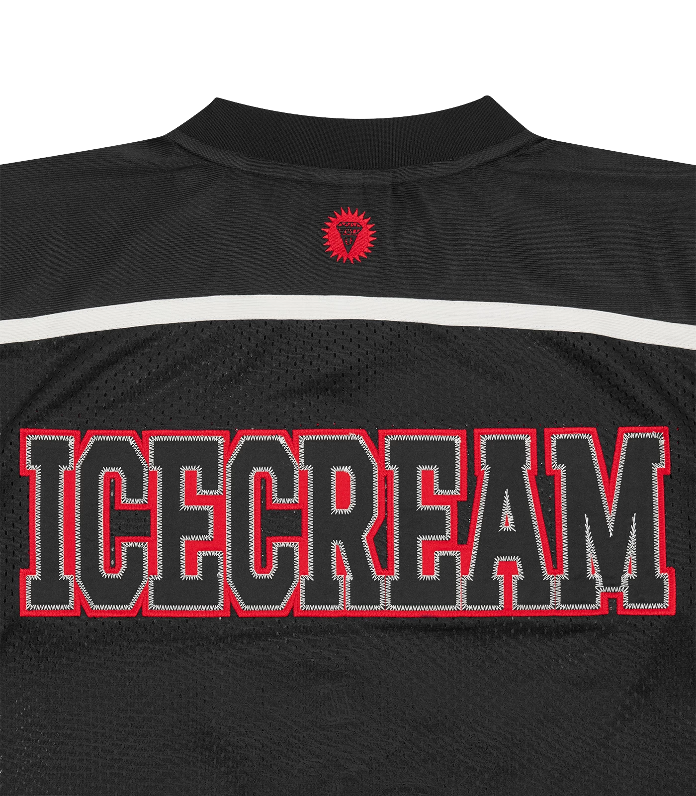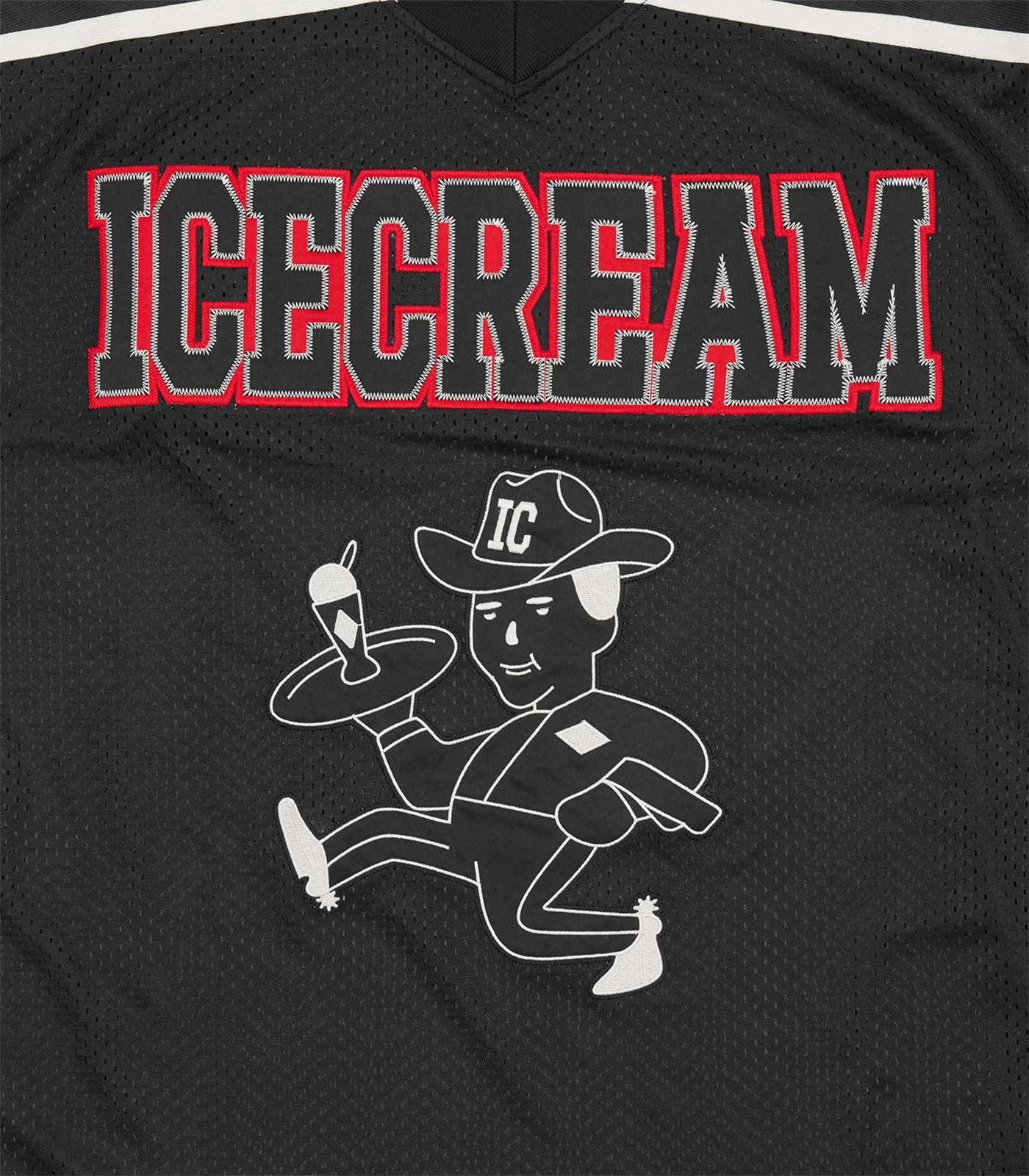 ICECREAM Spring ’24 – This Football Shirt is a classic American Football style jersey with embroidered ICECREAM logo and graphic at front at chest and at back.