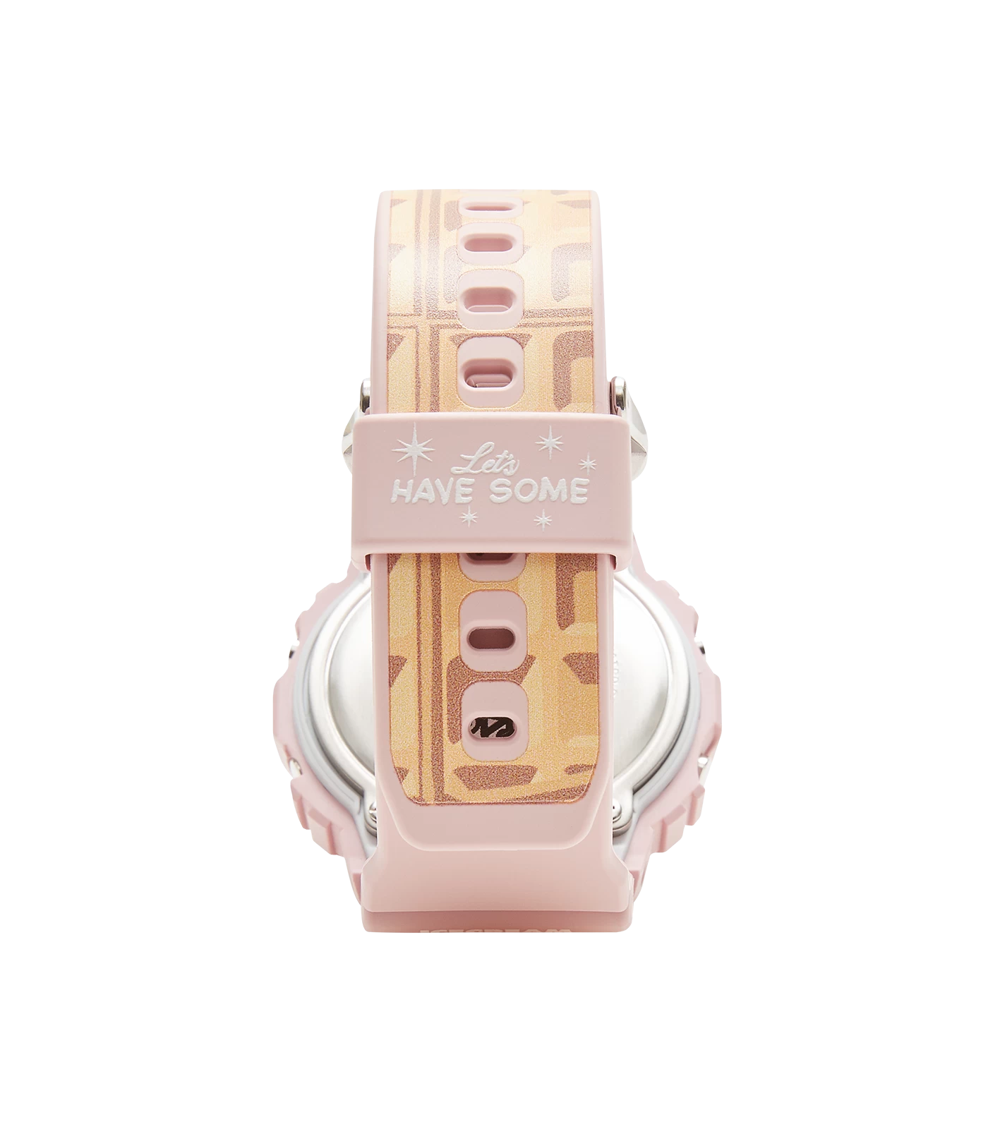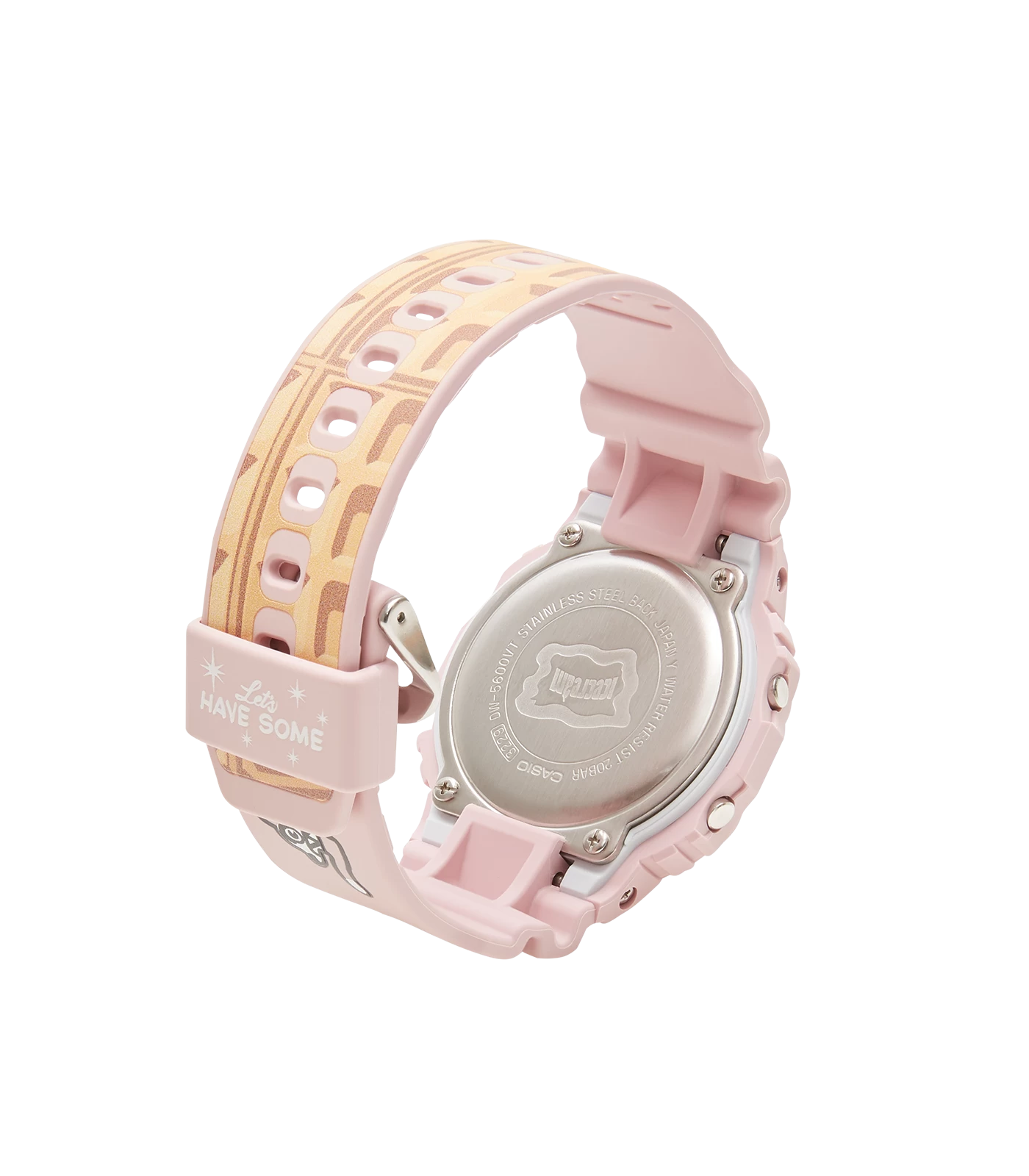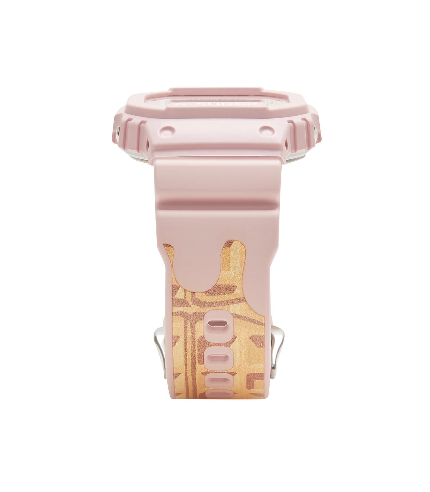 This Casio G-Shock watch in pink features the ICECREAM Waffle and Drip artwork on the band and face, with the classic ICECREAM Soft Serve logo etched on the back face of the watch’s bezel.