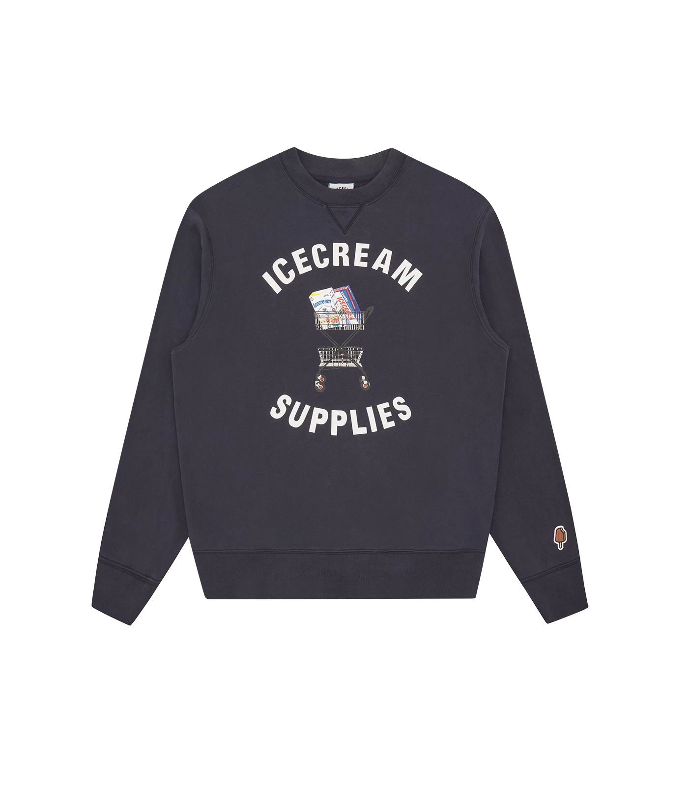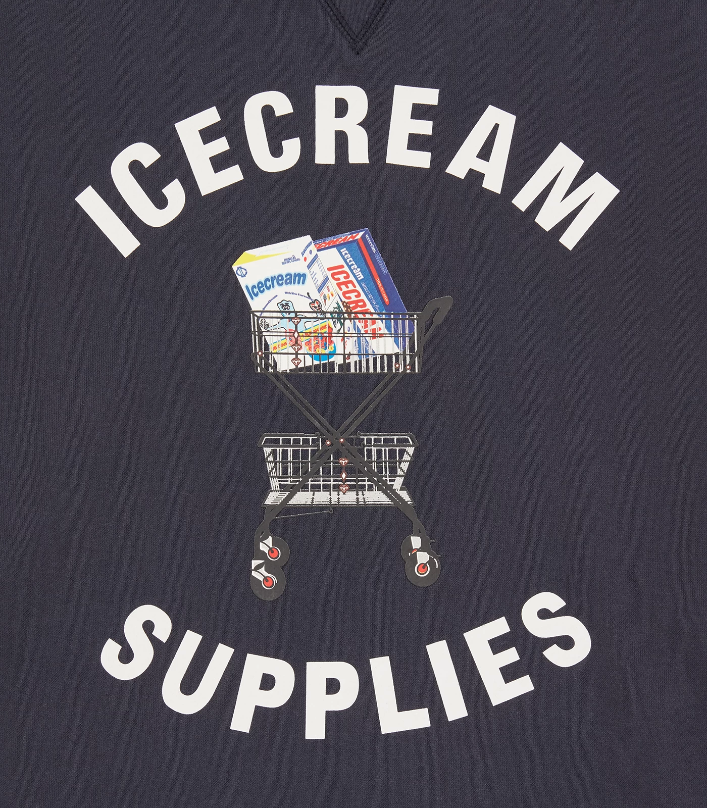 ICECREAM Pre-Spring ’24 – The ICECREAM Supplies Crewneck presents a screen print graphic at front and the ICECREAM signet at back.
