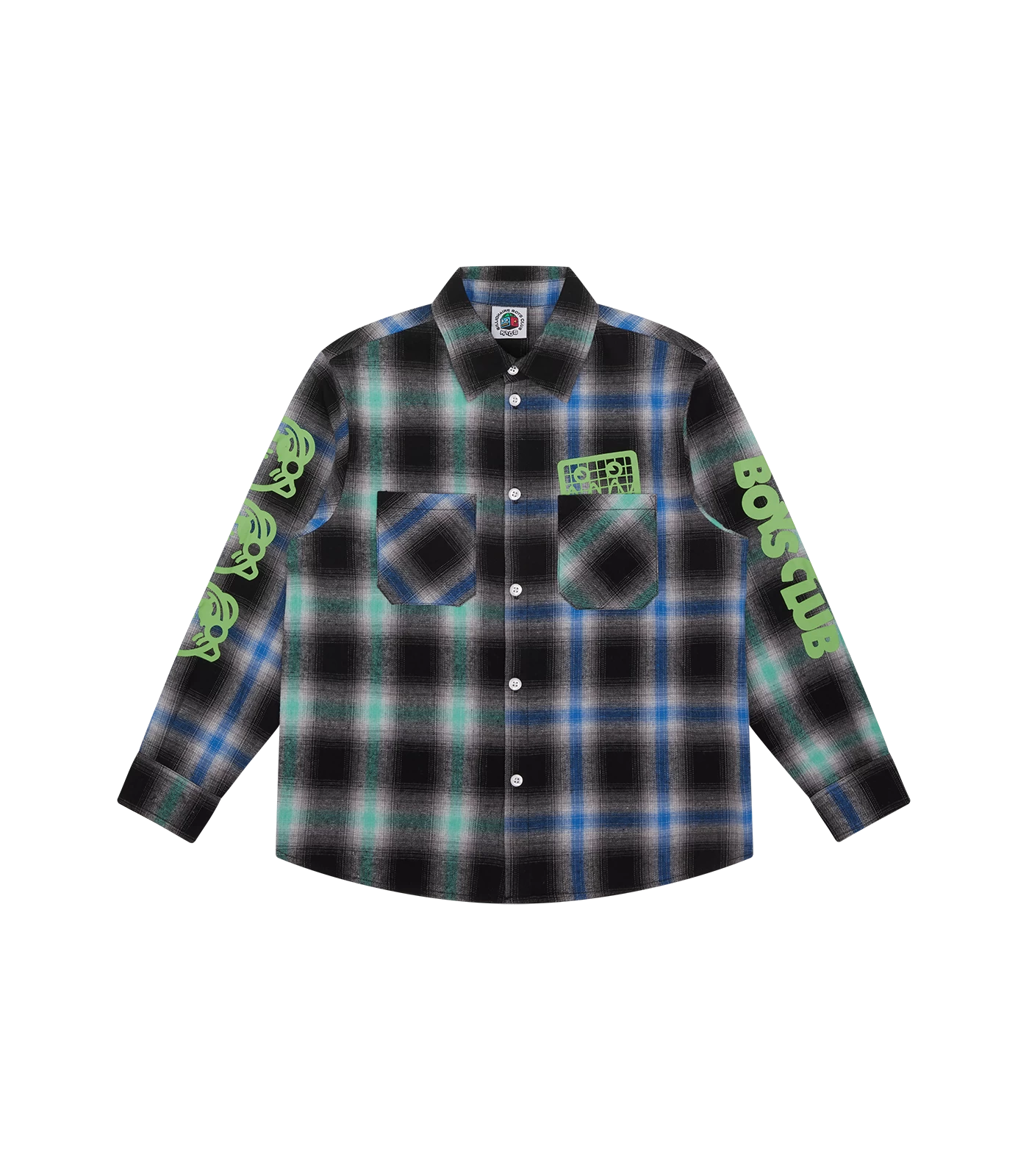 Billionaire Boys Club Kids Collection – Check L/S Shirt detailed with a screen print graphic at the front pocket, it presents Billionaires Boys Club logo and the Astro logo repeated graphics on both sleeves.