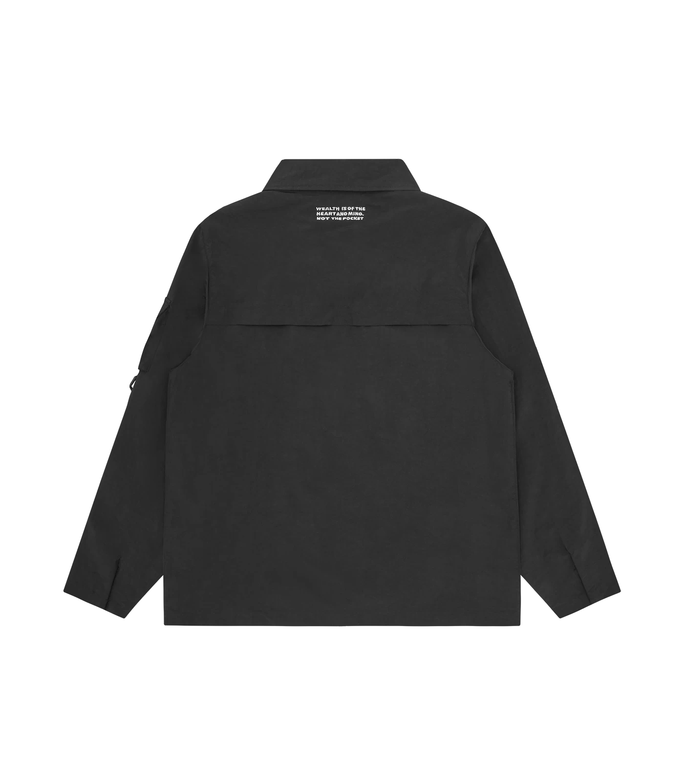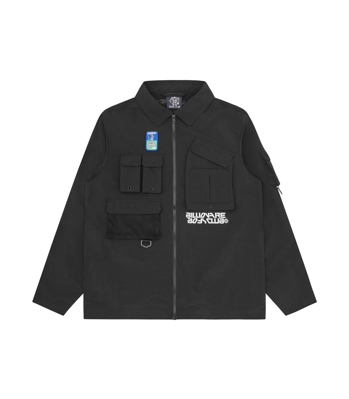 Billionaire Boys Club Pre-Fall ’24 – Multi Pocket Overshirt featuring an embroidered patch at chest and Billionaire Boys Club logo at front, detailed with an embroidered Heart & Mind mantra at back neck.