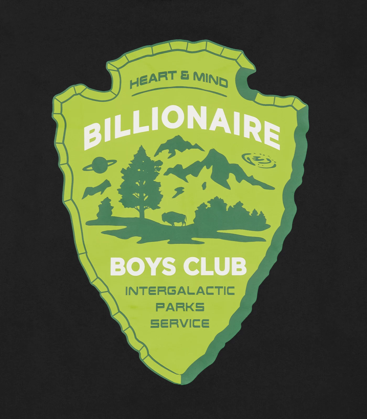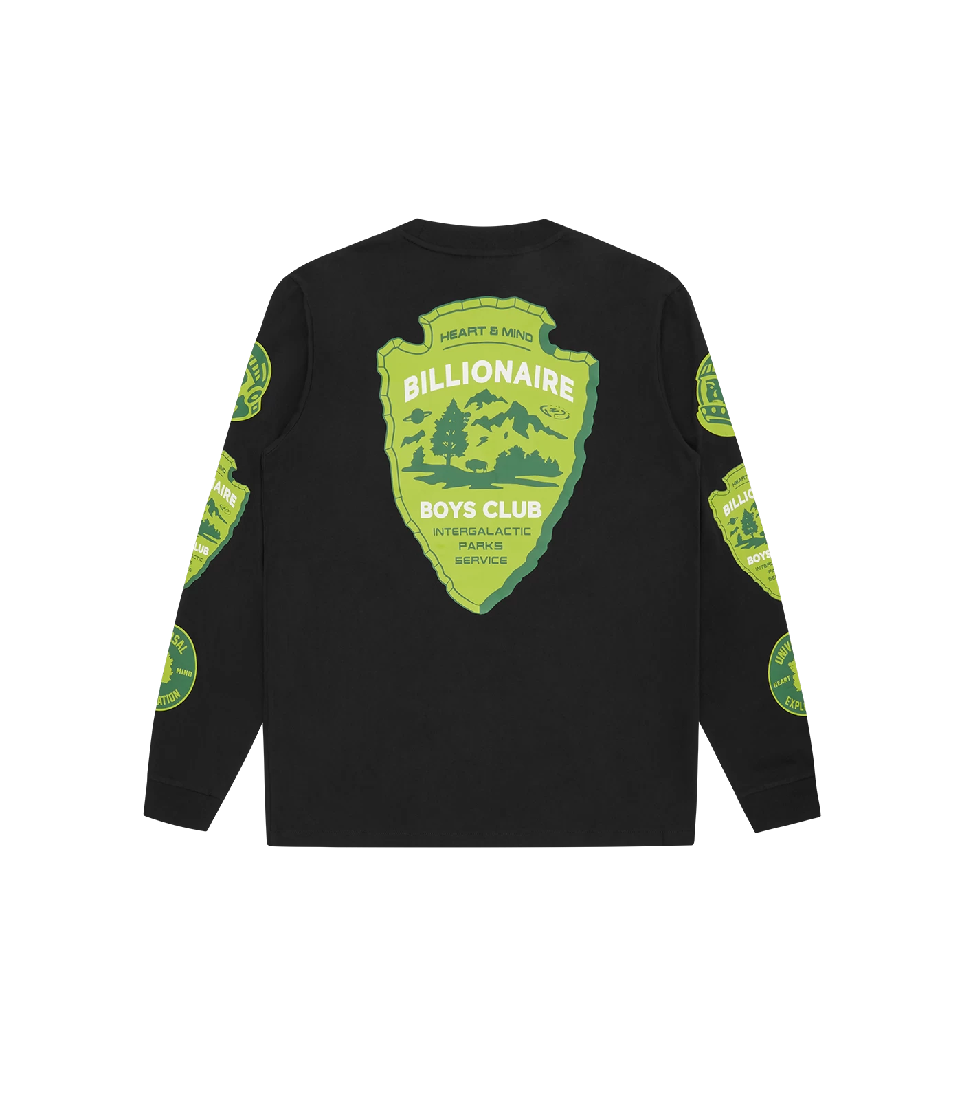 Billionaire Boys Club Pre-Spring ’24 – Parks Long Sleeve T-shirt, cut and sew piece, made with 100% cotton, detailed with Billionaire Boys Club graphics on both sleeves and back, with a pocket at chest.