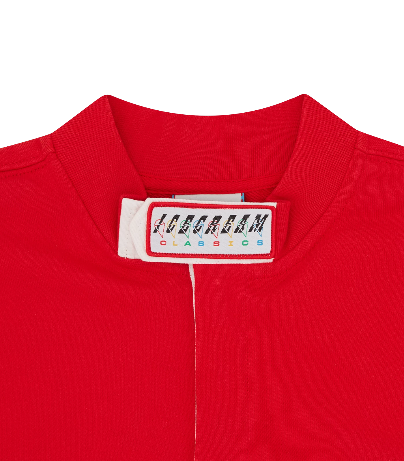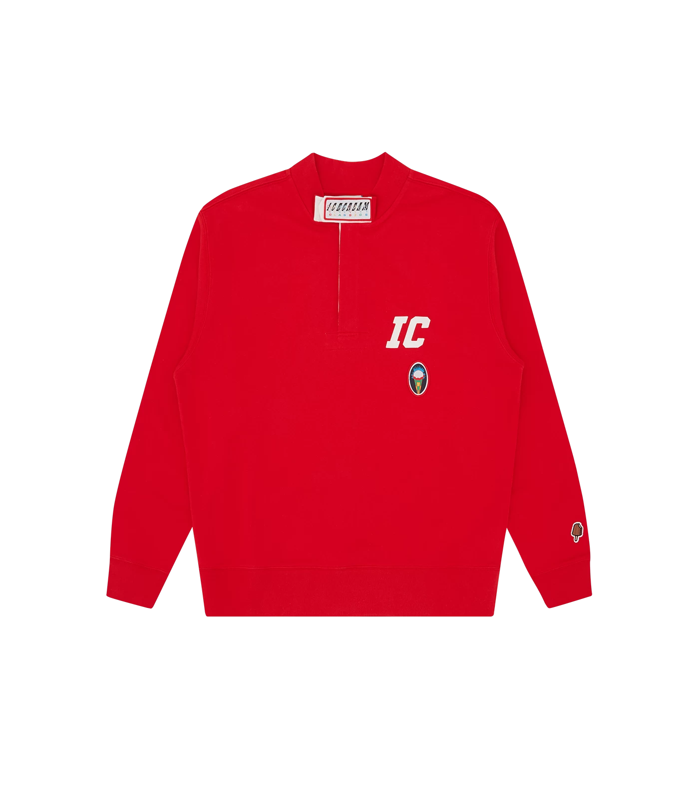 ICECREAM Spring ’24 – This Racing Zip Crewneck presents a half zip on the collar with strap closure and the IC signet logo at chest.