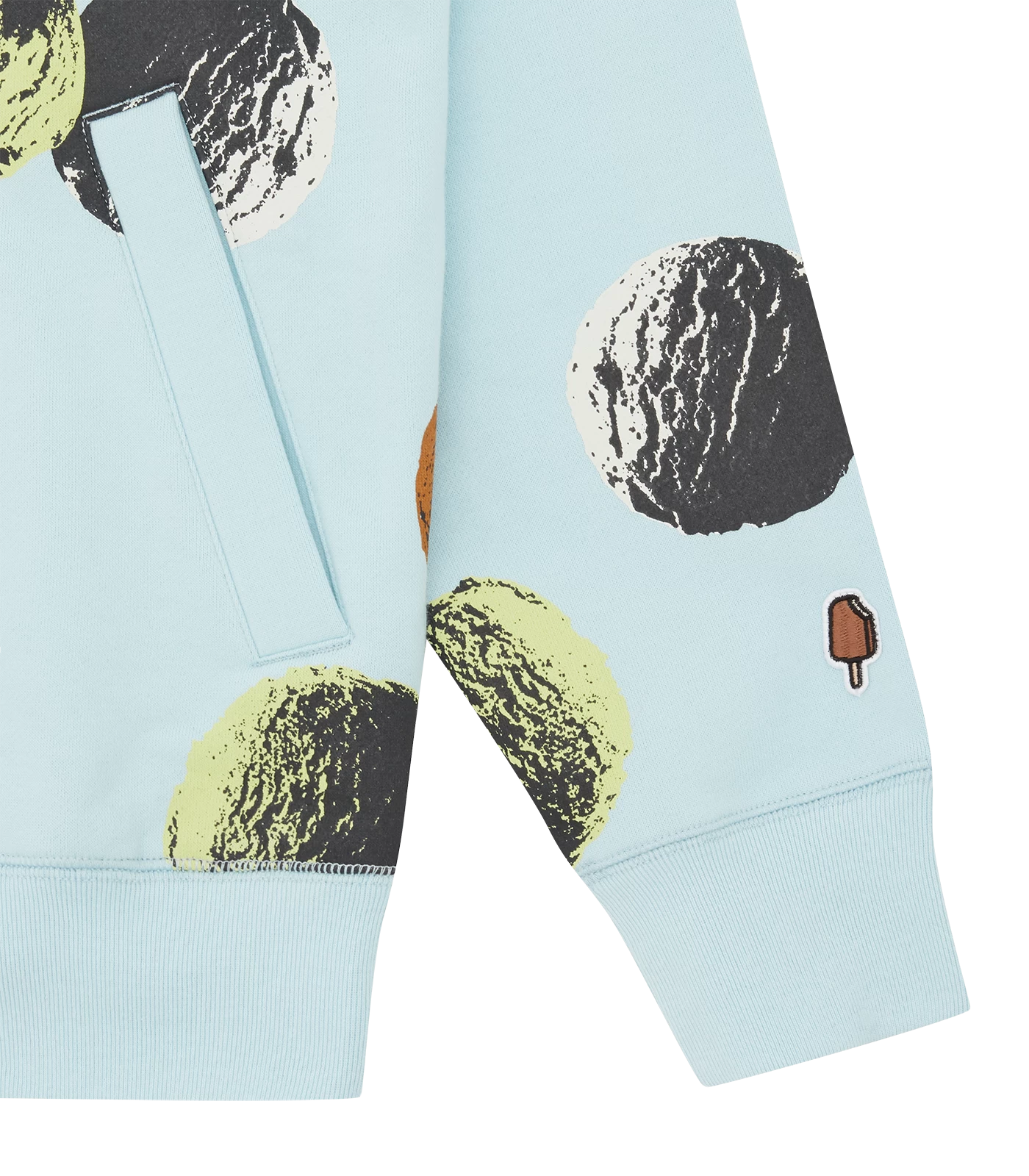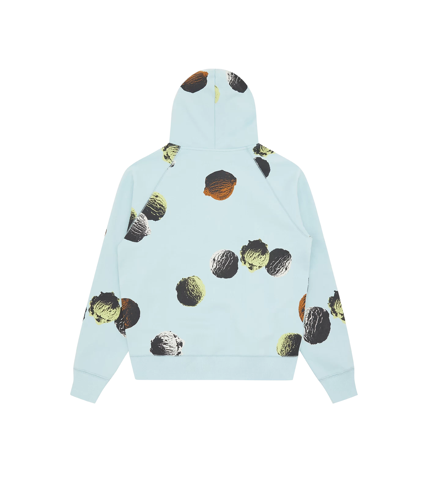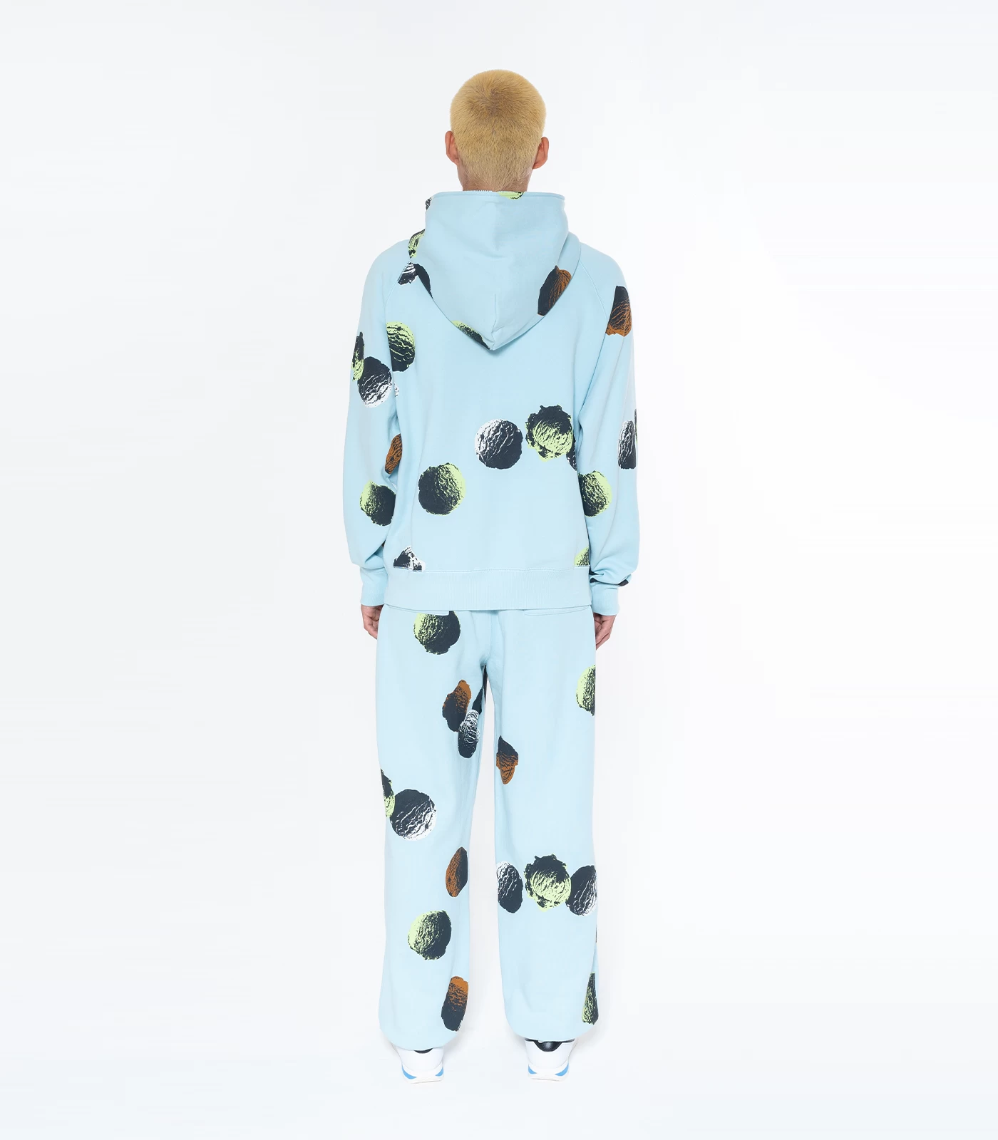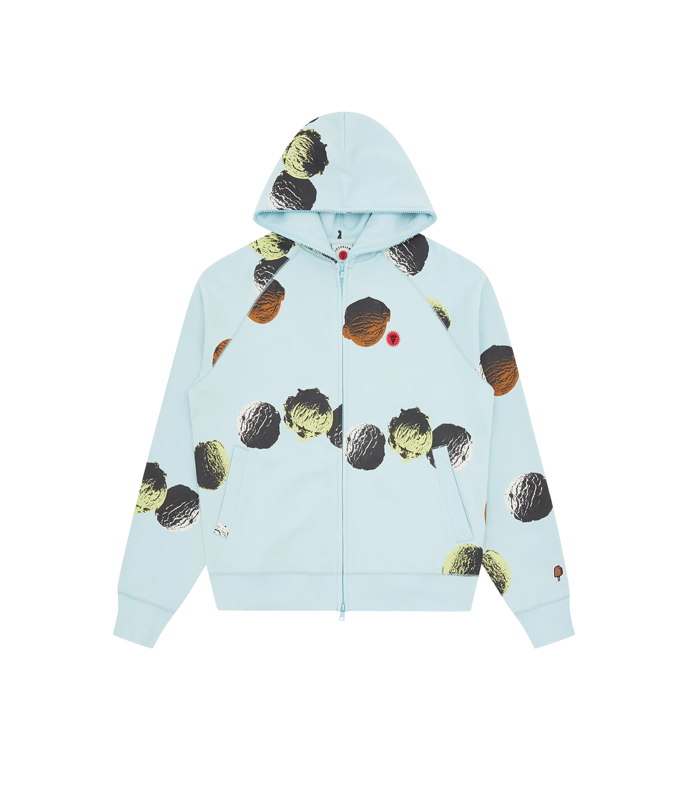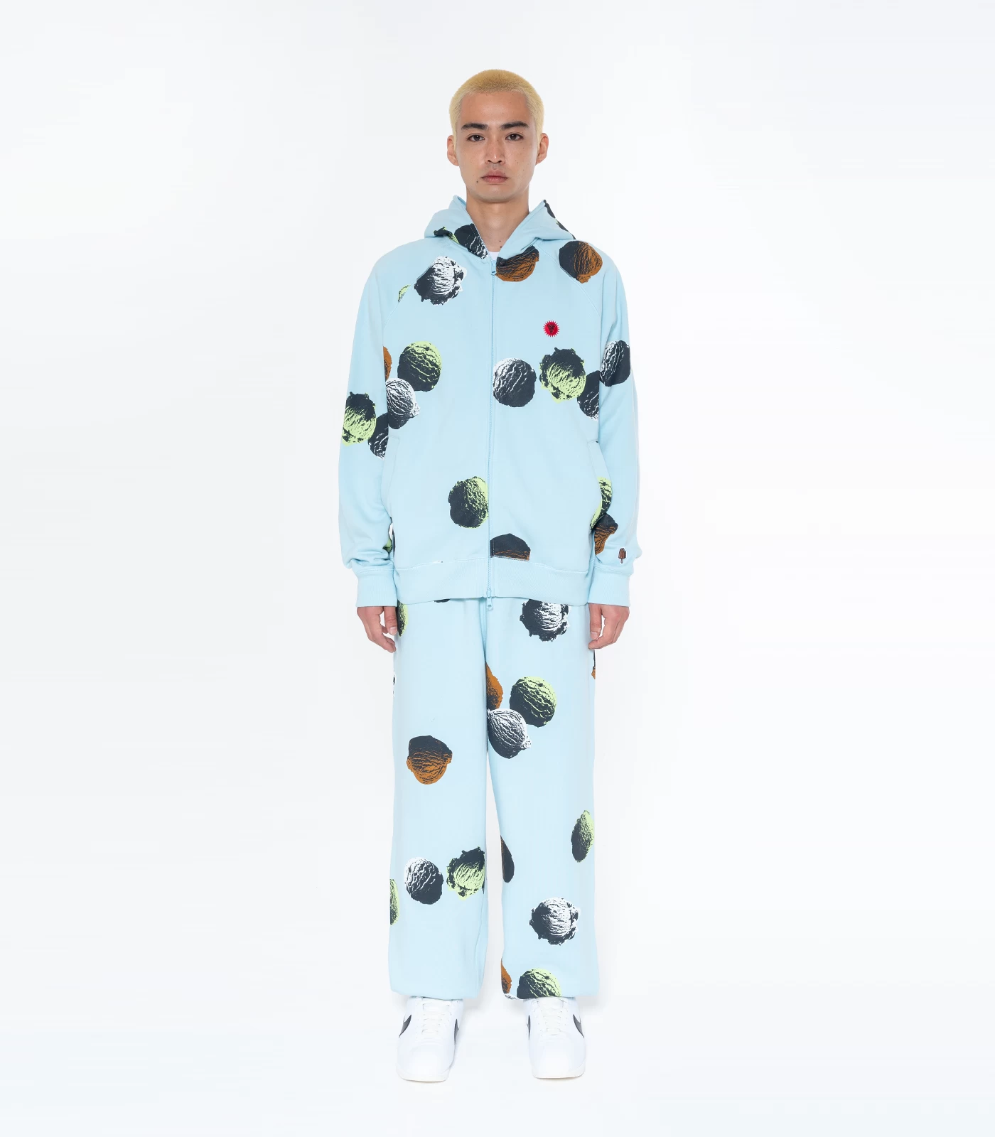 ICECREAM Pre-Spring ’24 – Scoop Zip-Trough Hood, designed with an all over print, kangaroo pouch and drawstring hood. Matching sweatpants available.