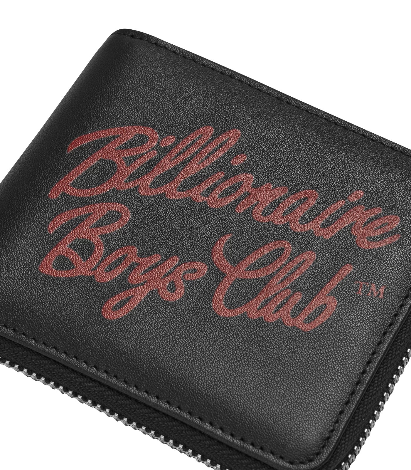 Billionaire Boys Club Spring ’24 – 100% leather construction wallet presenting the Billionaire Boys Club Script logo at front, 3 quick-access card slots and coin purse.