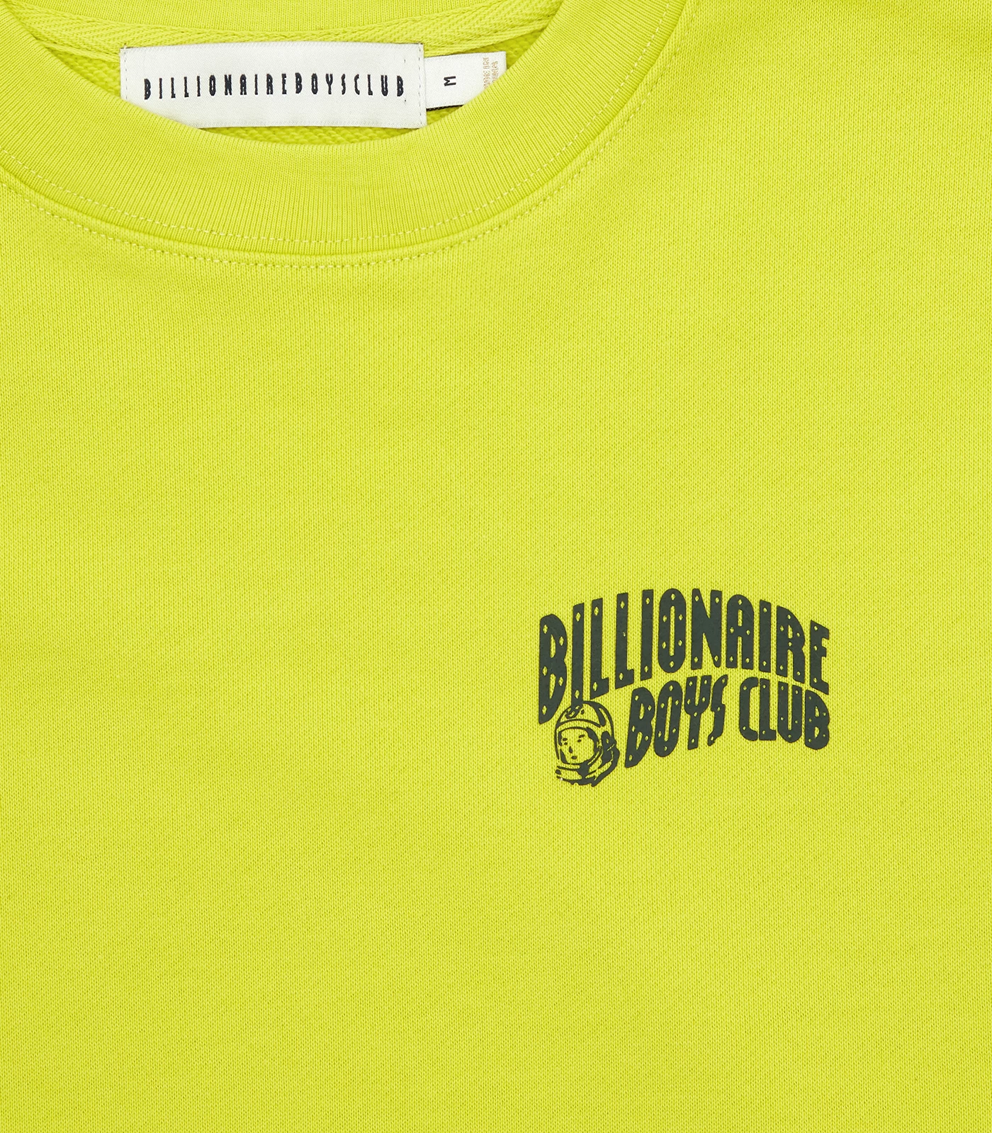 Billionaire Boys Club EU Classics: The Small Arch Logo Crewneck is produced using 100% 400GMS loopback jersey cotton and features the iconic small arch logo graphic at chest and a standing astronaut neck graphic.