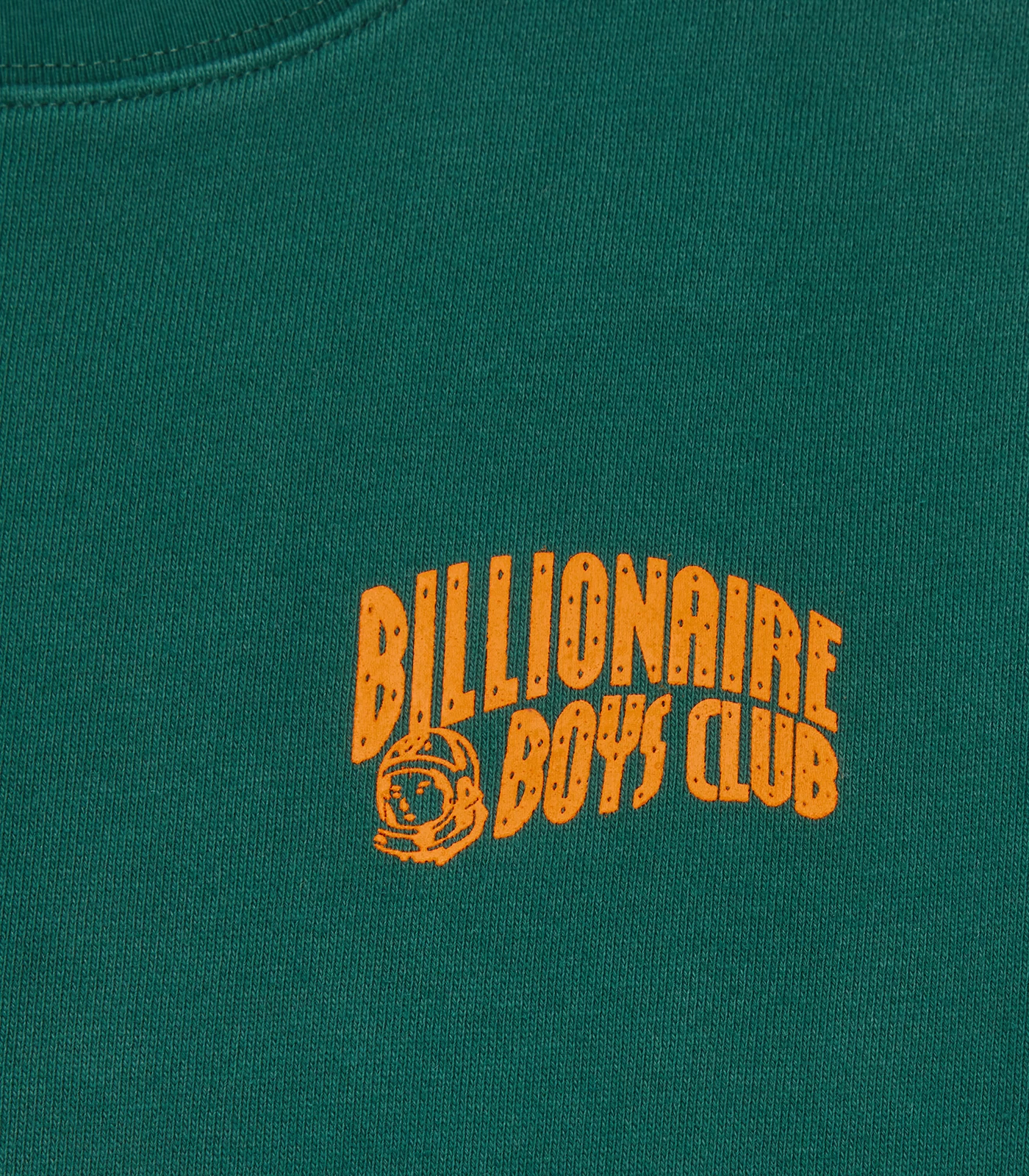 Billionaire Boys Club EU Classics: The Small Arch Logo Crewneck is produced using 100% 400GMS loopback jersey cotton and features the iconic small arch logo graphic at chest and a standing astronaut neck graphic.
