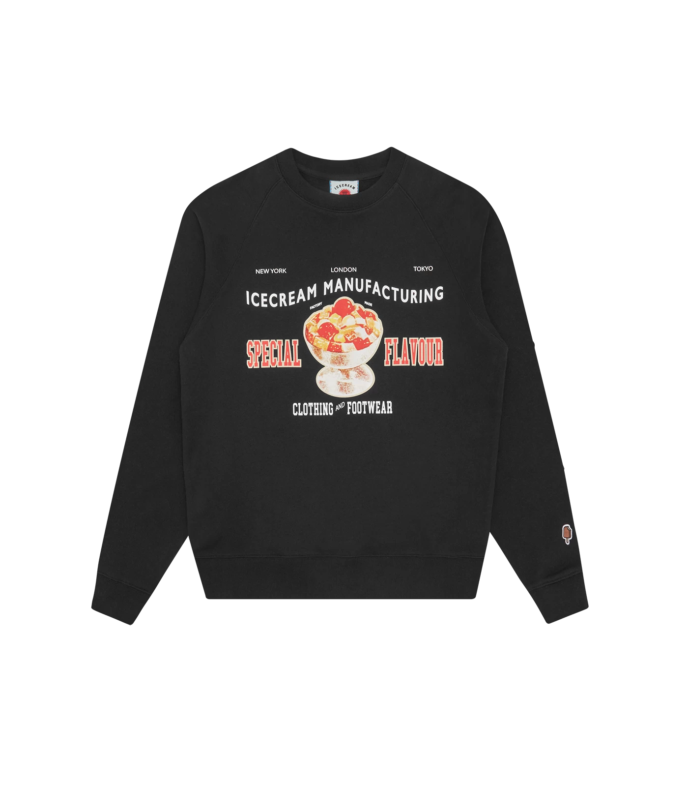 ICECREAM Spring ’24 – The Special Flavour Crewneck presents a screen print graphic at front and the ICECREAM signet at back.