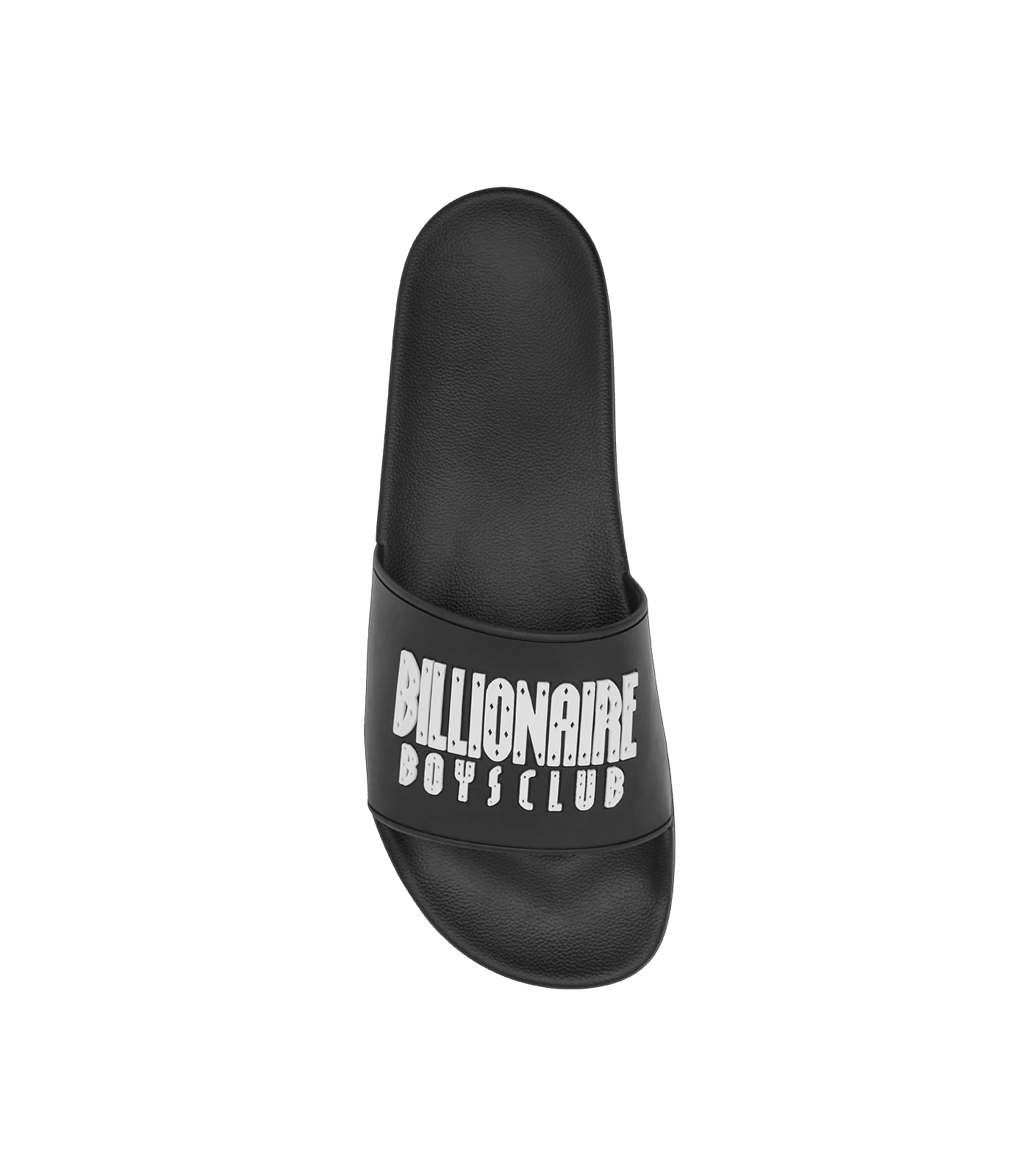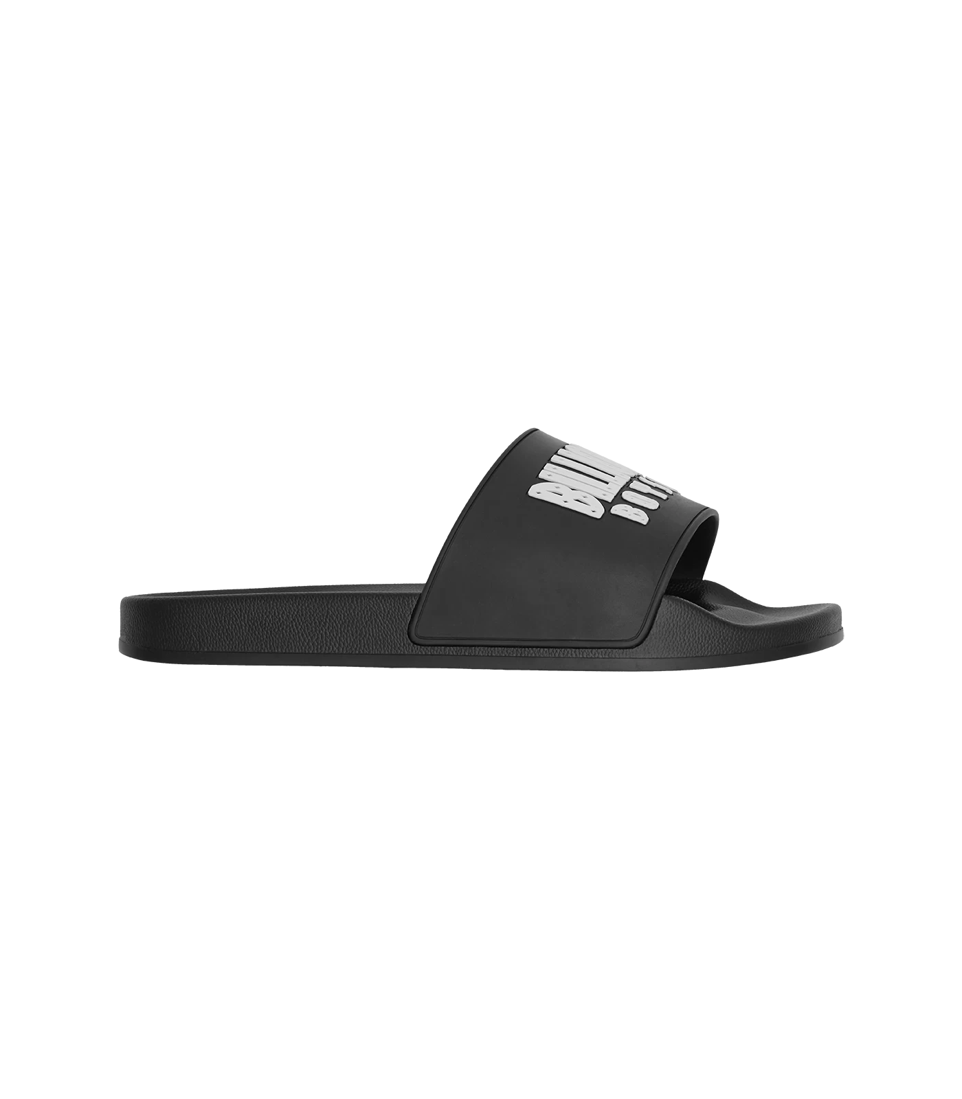 Billionaire Boys Club CLASSICS – Straight Logo Slides in black. Made with 100% PU leather. Sold in EU sizes — EU40/UK6, EU41/UK7, EU42/UK8, EU43/UK9, EU44/UK10, EU45/UK11.