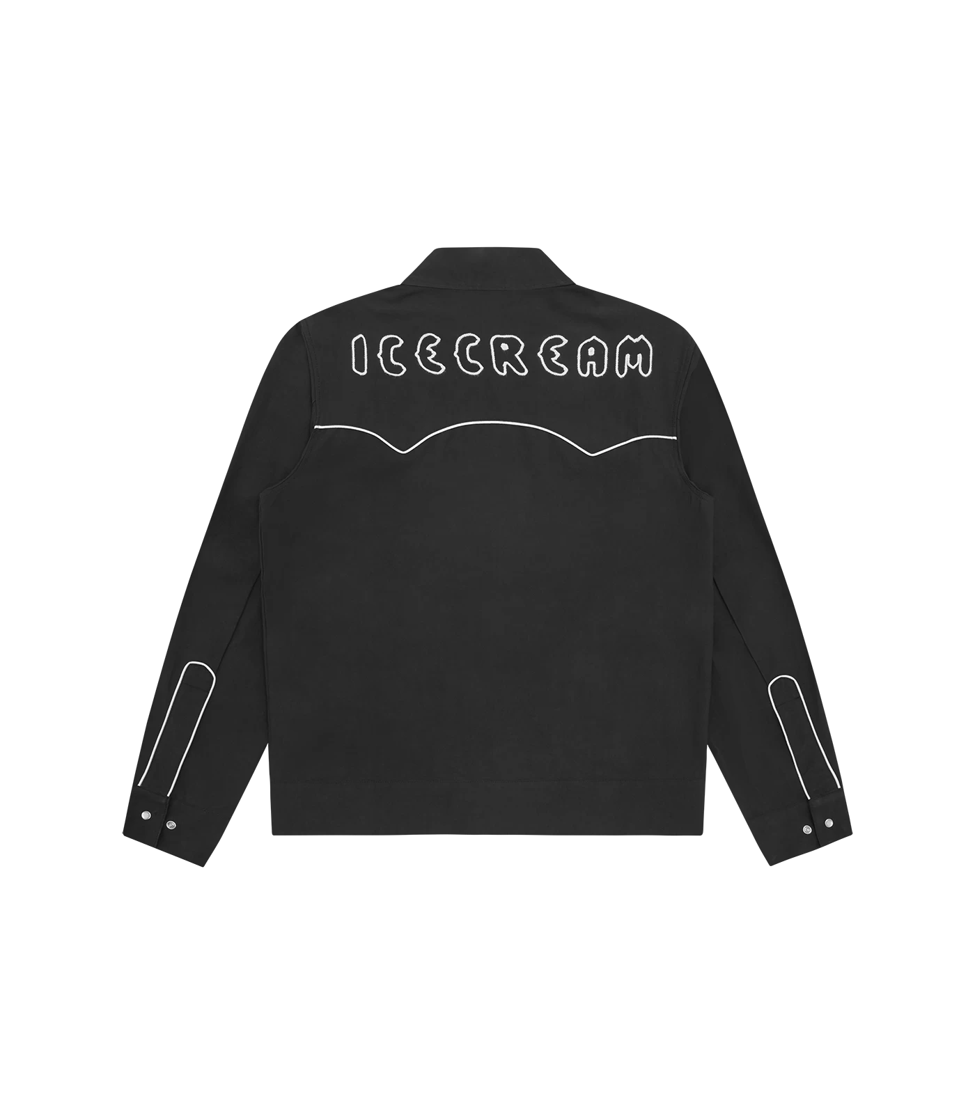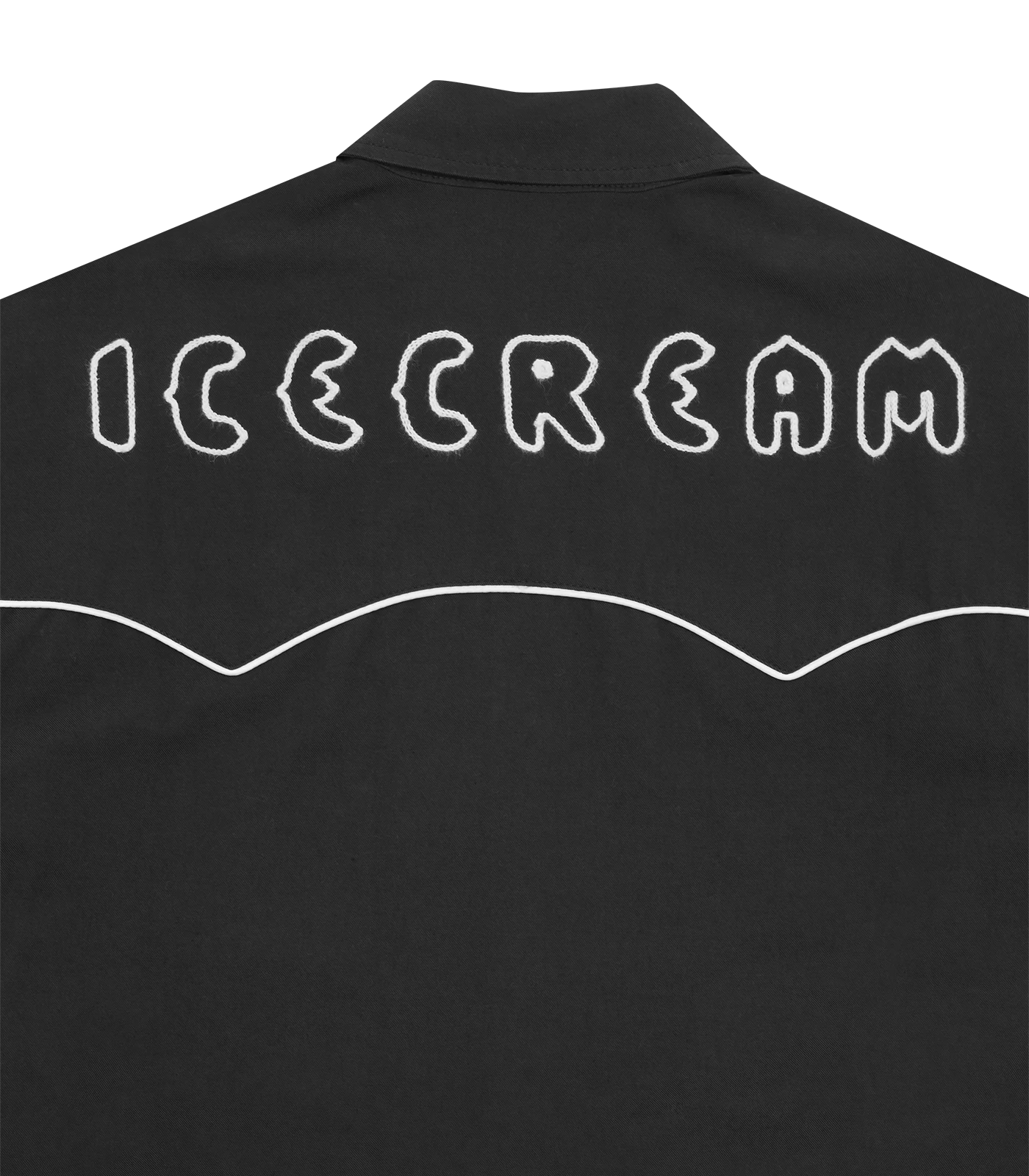 ICECREAM Spring ’24 – Western Embroidered Overshirt presenting the embroidered Team EU Skate Cone icon at chest and ICECREAM lettering at back.