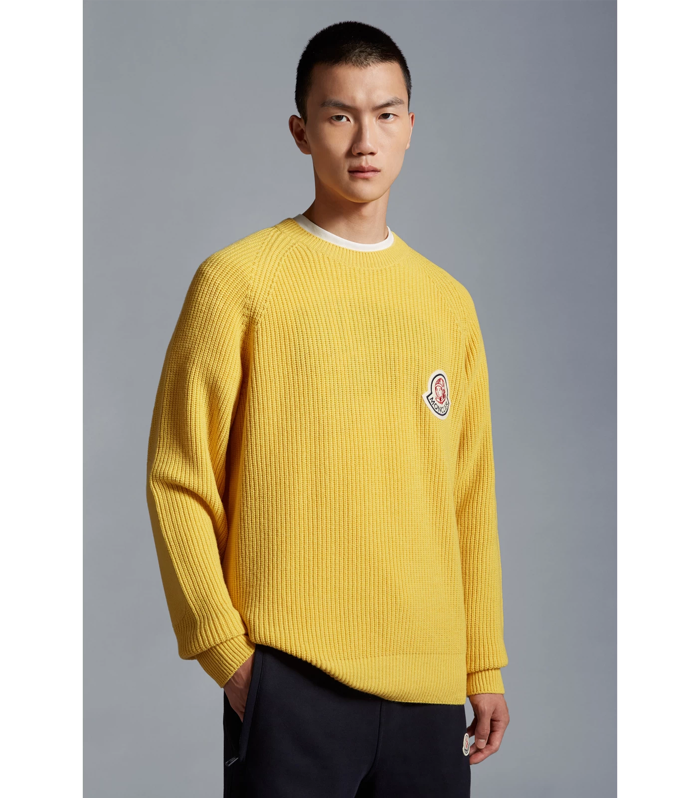 Detailed brioche stitching and a subtle elbow patch on the wool and cashmere blend Tricot Sweater provide elevated warmth. A felted collaboration logo features at chest.